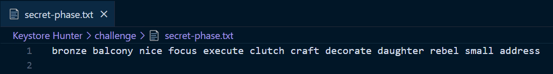 In this challenge, players are given a secret-phase.txt file containing a 12-word mnemonic phrase.